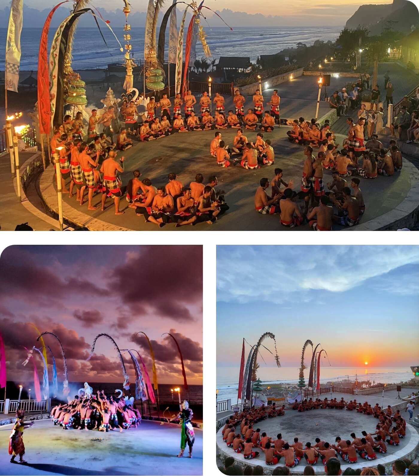 Melasti Beach, known for its white sands, clear waters, and dramatic cliffs, adds to the magic by providing a scenic backdrop with the sound of waves accompanying the performance.