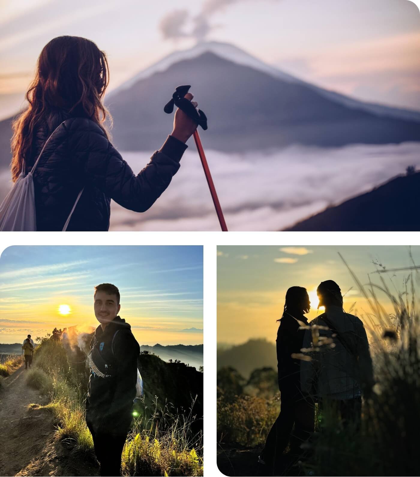When you reach the top of Mount Batur, get ready to be amazed by the sunrise! Feel the excitement as the first light hits the horizon, filling the sky with warm colors.