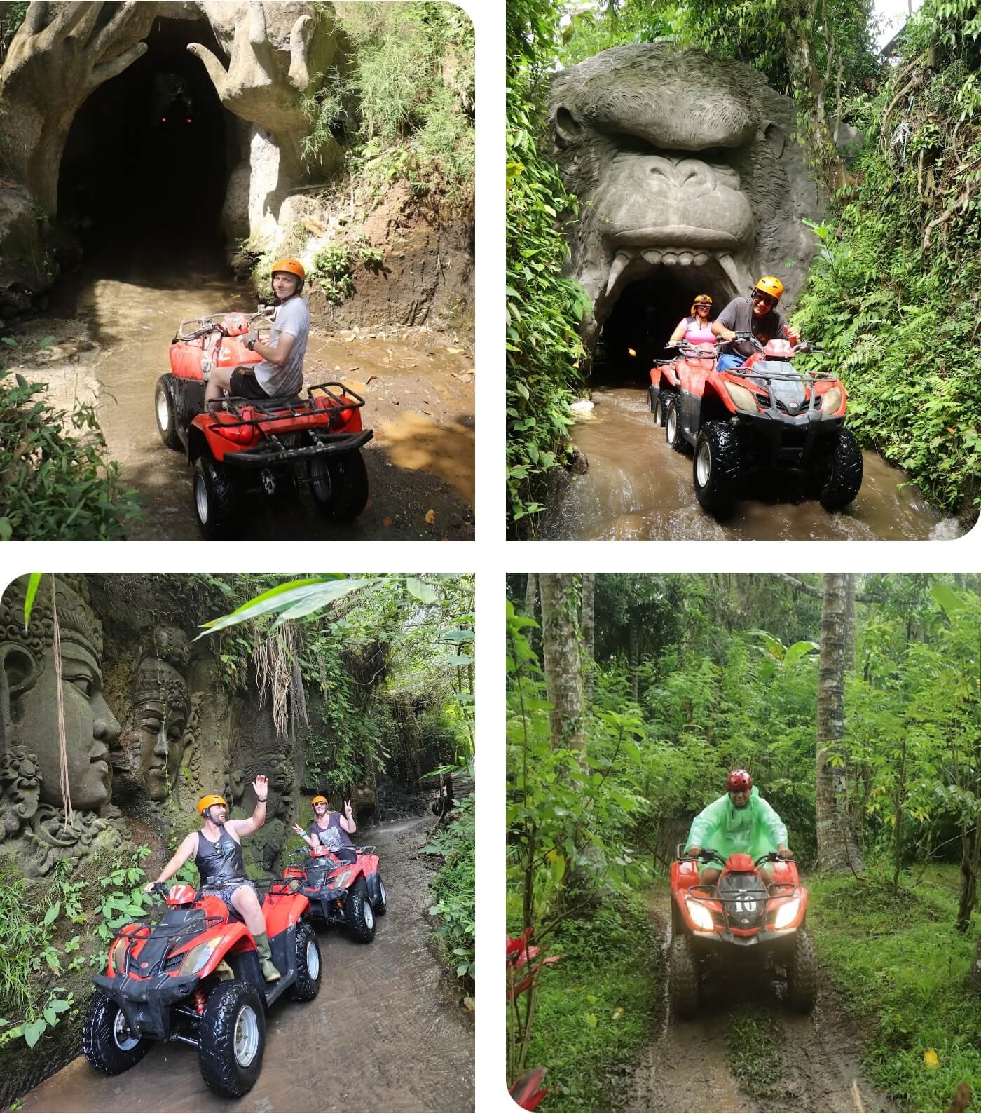 Ride through lush jungles, splash along river trails, and cruise across beautiful rice fields. Conquer the muddy paths, explore the Gorilla and Legong Caves, and feel the mist from a stunning waterfall. Finish with the fun track, designed for an extra dose of excitement.