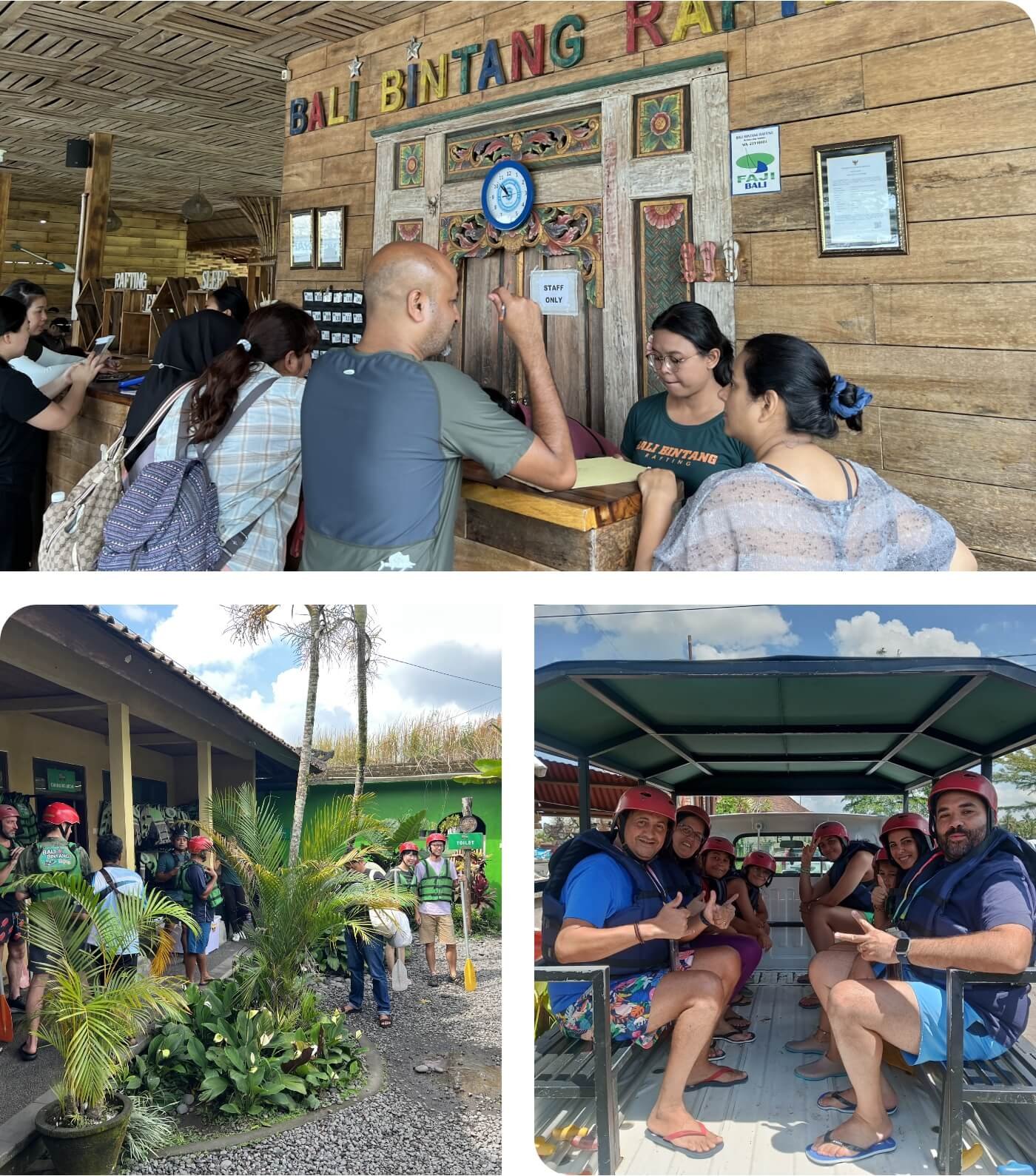 Arrive at the Bali Bintang Rafting reception in Jl. Raya Bunutan, Kedewatan, Ubud where you will register yourself, meet your rafting guide, and gear up with all the safety stuff to get ready for the adventure!